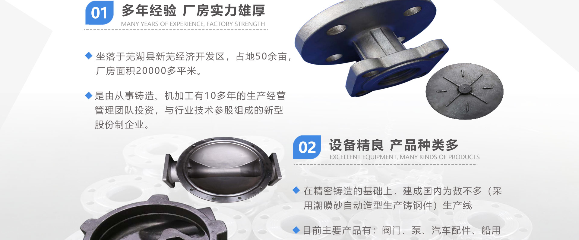 安徽偉工機(jī)械科技有限公司,坐落于安徽蕪湖新蕪經(jīng)濟(jì)開(kāi)發(fā)區(qū),是一家専業(yè)從事鑄造產(chǎn)品設(shè)計(jì)、研發(fā)、生產(chǎn)、銷(xiāo)售于一體的企業(yè),公司為客戶的產(chǎn)品提供多樣的技術(shù)支持與設(shè)計(jì),公司主要鑄造技術(shù)有潮模砂鑄造、硅溶膠精鑄工藝。主要產(chǎn)品有:不銹鋼閥門(mén)配件、泵閥配件、汽車(chē)配件、工業(yè)管道配件、工程機(jī)械配件、汽車(chē)配件等。材質(zhì)為:低合金鋼、304、316、316L、鉻鉬鋼、哈氏合金、碳鋼、雙相鋼等。公司已先后通過(guò)ISO9001和TS16949等多種體系審核,以完備的管理手段和齊全的檢測(cè)設(shè)備滿足客戶需求,進(jìn)的設(shè)備,専業(yè)的技術(shù),嚴(yán)謹(jǐn)?shù)墓芾恚€(wěn)定的質(zhì)量。服務(wù)客戶,鑄造未來(lái),偉工誠(chéng)摯的歡迎新老客戶共同商洽合作